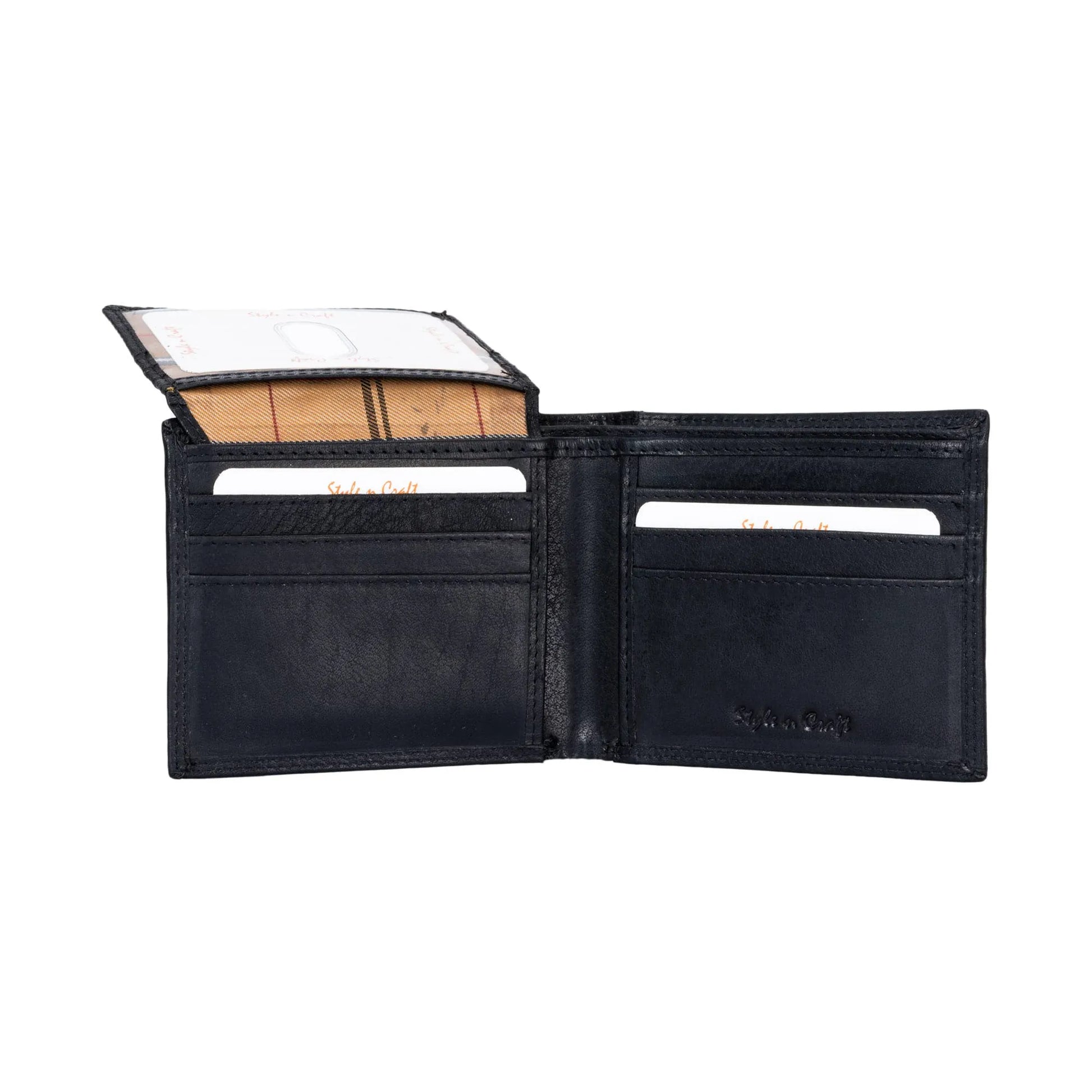 Black Bifold Pass Case Leather Wallet with Flap | Style n Craft